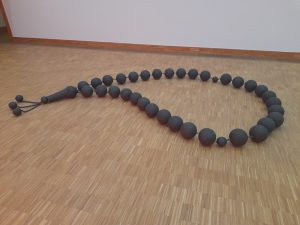 Vragen zijn vaak interessanter dan antwoorden. Om een voorbeeld te geven: wat bedoelt Maona Hatoum met dit kunstwerk? Ik kan je natuurlijk haar antwoord uit de expositiegids geven, maar wat denk je zelf?