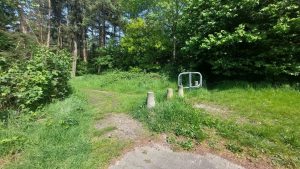 Verloren staat het roestige draaihekje in het gras. Volledig nutteloos geworden. Samen met de betonblokken, die ooit de route bepaalden. Vergane glorie. Ik besluit ze te eren en vervolg piepend mijn weg.
