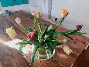 “Kom maar door met die bloemen!”, zeg ik met griepstem als de bezorgdienst voor de deur stopt … en bij de buren aanbelt.