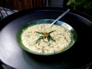 Als de bel gaat staat de buurman voor de deur met in zijn handen een bord hete linzensoep.